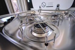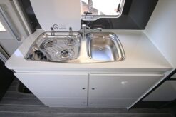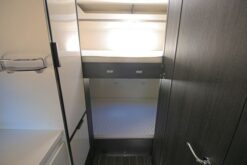 La Roller Team Kronos 279 M posee baño completo, con muebles de madera, ducha de doble descarga con mampara, grandes espejos con iluminación integrada y ventana. Destacar la cocina de diseño moderno, con tapa de cristal encima de los 3 quemadores, frigorífico trivalente de 140l anti huella, con botellero independiente que permite ahorrar energía, la completan gran cantidad de armarios y cajones, donde guardar todo el menaje de cocina no será un problema.